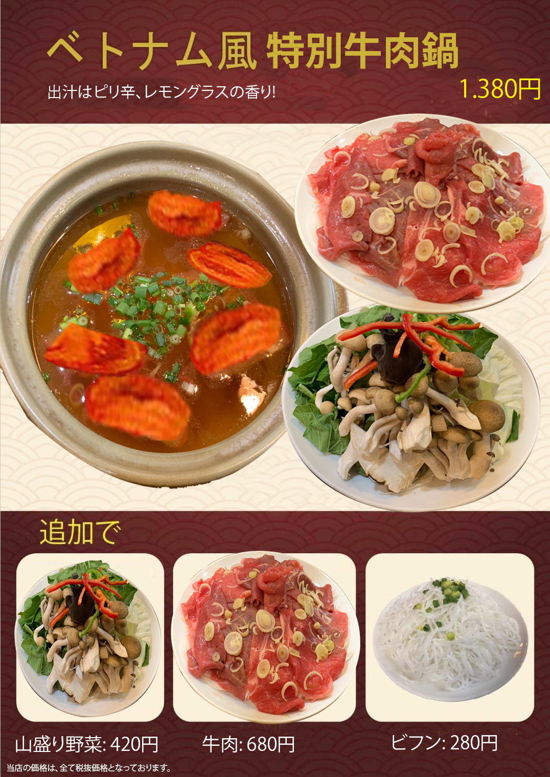 レストランの魅力的なメニューには、150 種類以上の本格的なベトナム料理が揃っています。